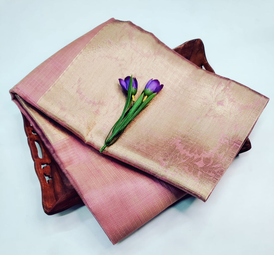 Ananya Pink & Silver Aqua Tissue Pattu Saree