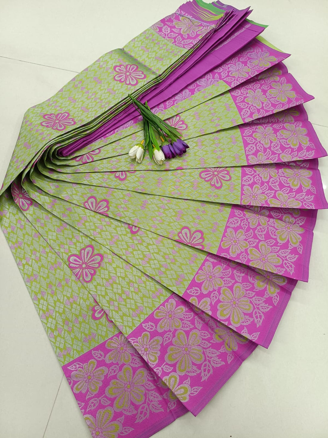 Parrot Green Silk Cotton Saree with Thread Border & 1000 Small Thread Butta