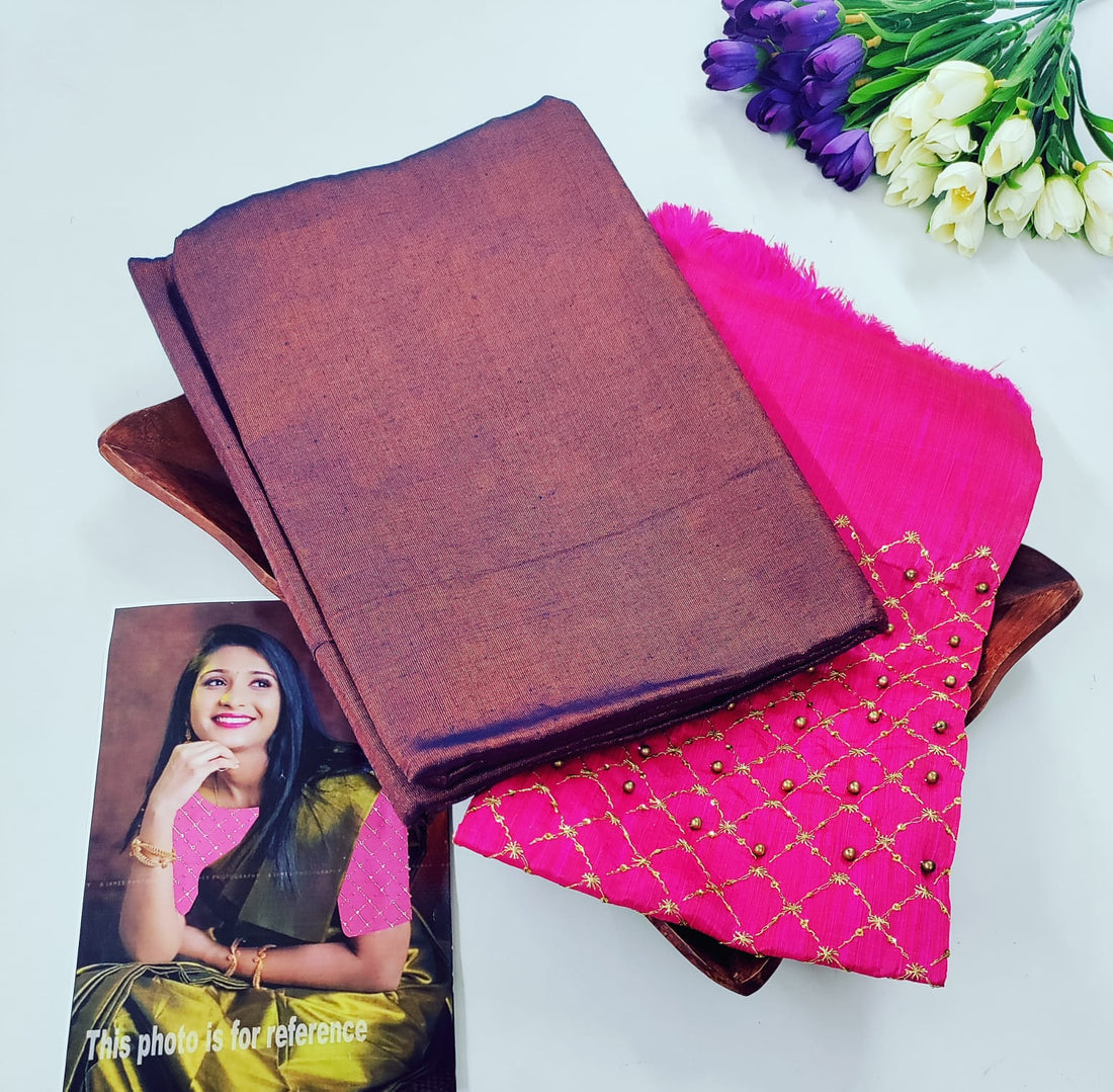 Tissue Cotton Plain Saree with Designer Extra Blouse