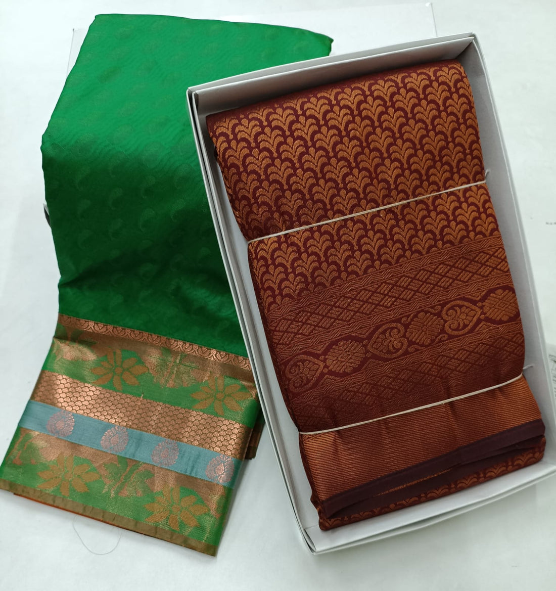 This exclusive Buy 1 Get 1 combo offer brings together a luxurious Bridal Silk Saree...