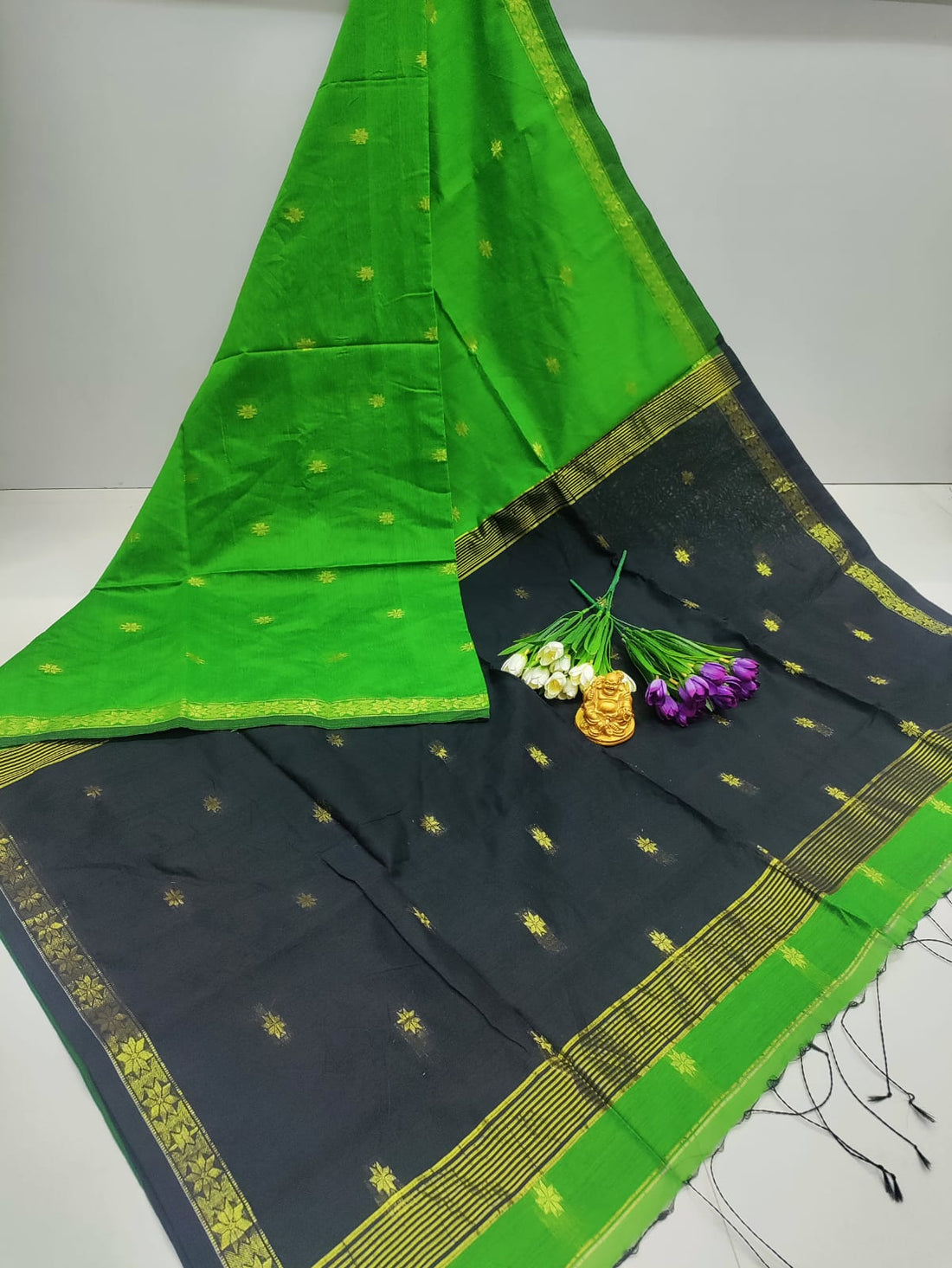 Add a pop of vibrance to your ethnic wardrobe with this Parrot Green with Black...