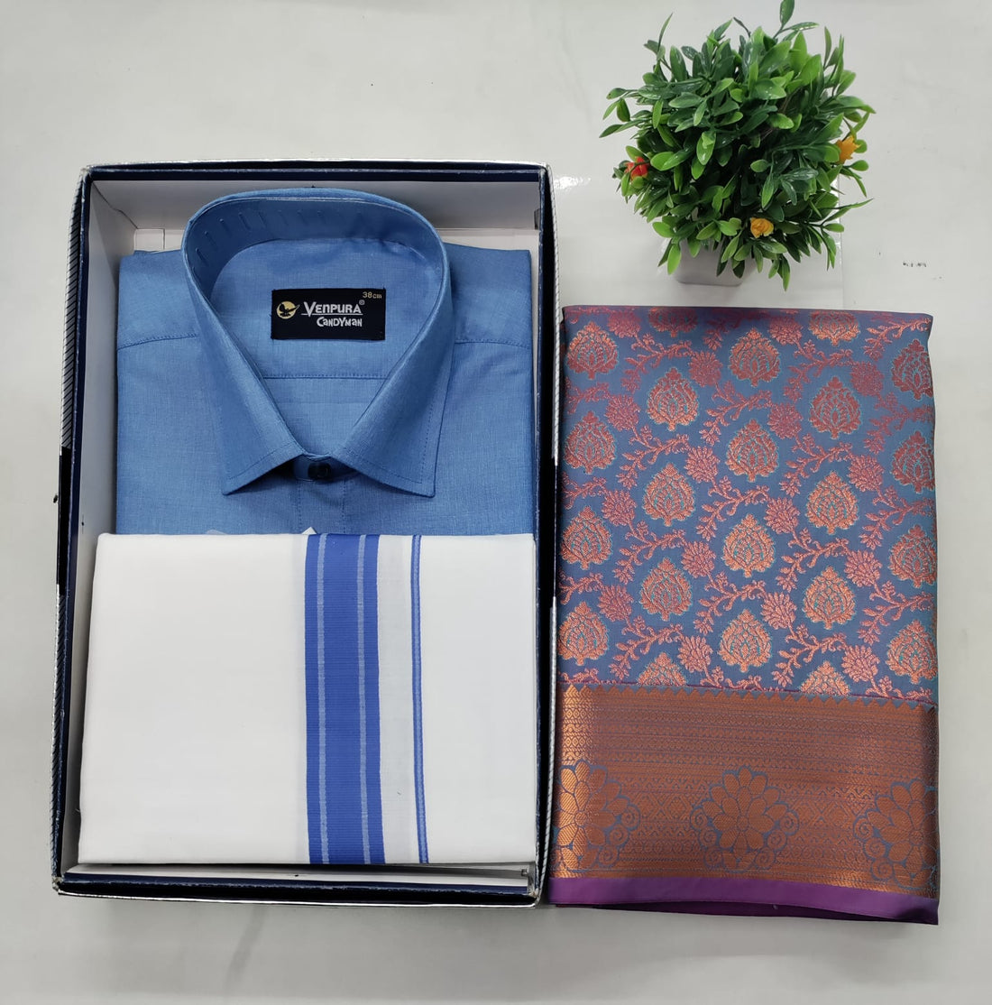 Bring elegance and tradition together with the Lavender Sky Blue Premium Couple Combo Set, specially...