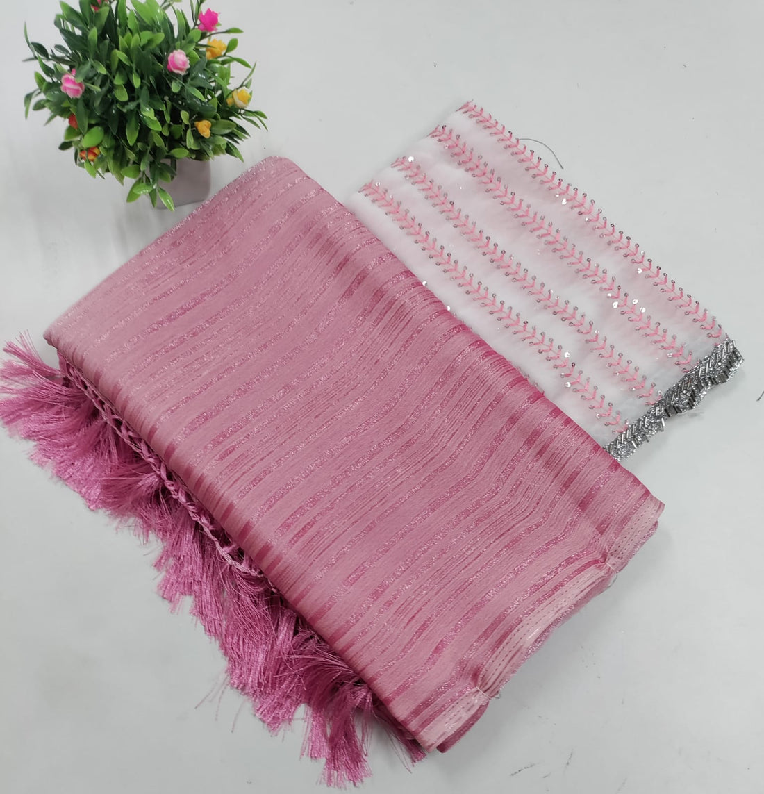 Enhance your ethnic wardrobe with this beautifully crafted saree set. The soft shaded saree drapes...
