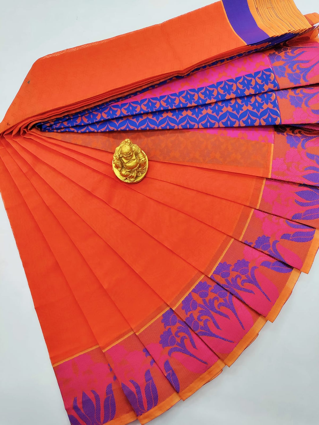 Add a vibrant touch to your collection with our Orange Silk Cotton Saree with Thread...