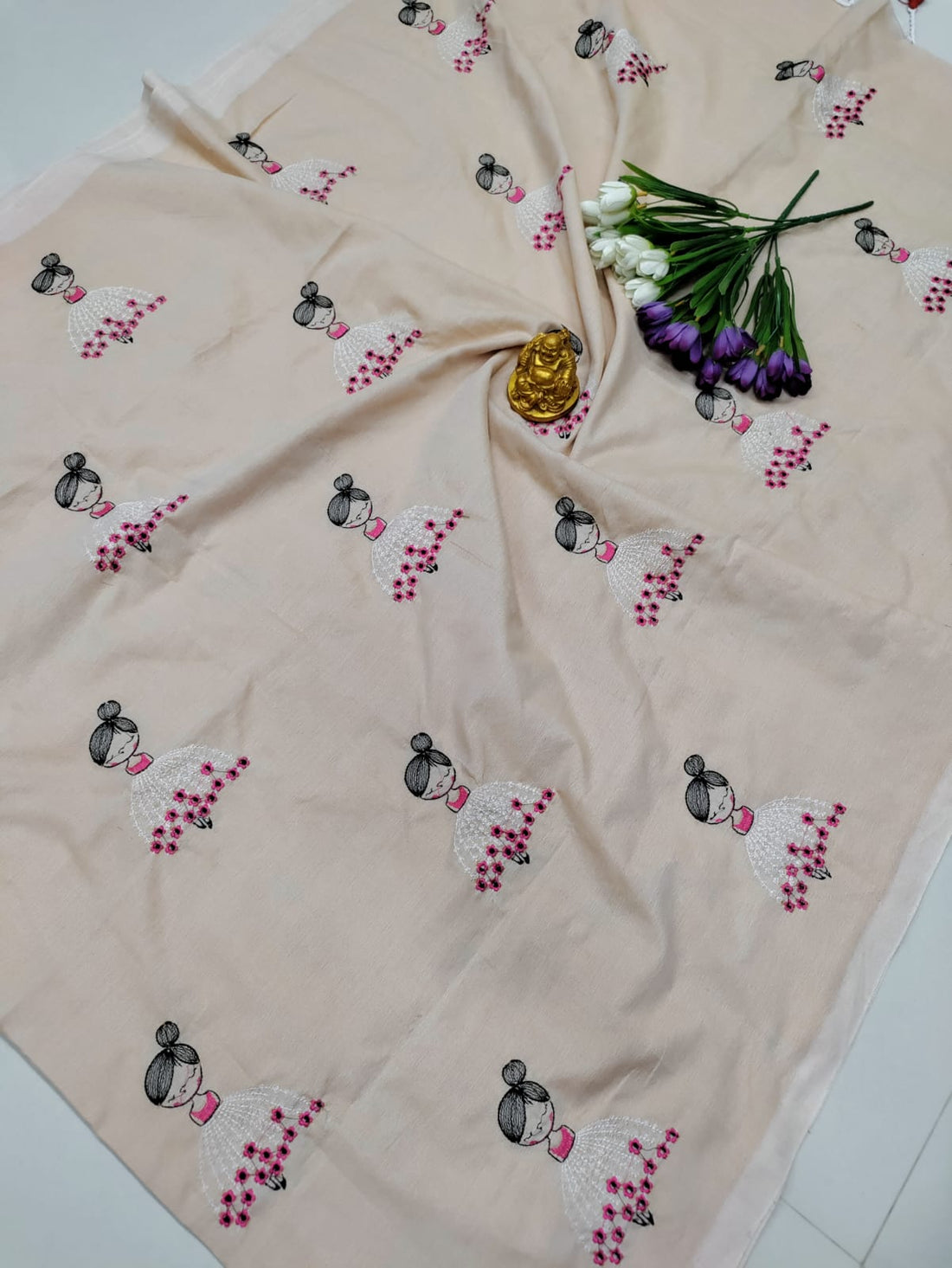 Cream White Premium Cotton Saree with Elegant Embroidery