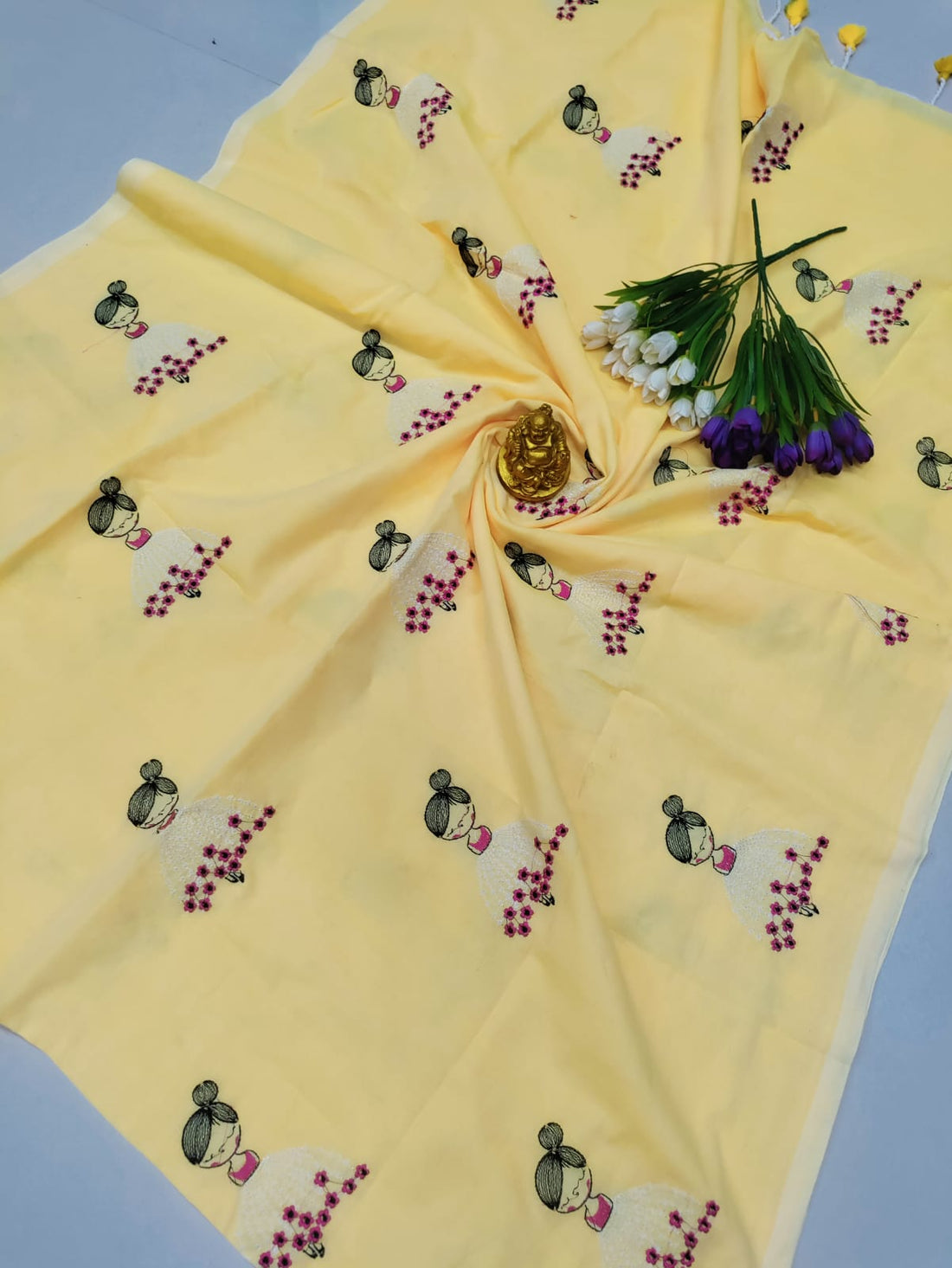 Yellow Premium Cotton Saree with Elegant Embroidery