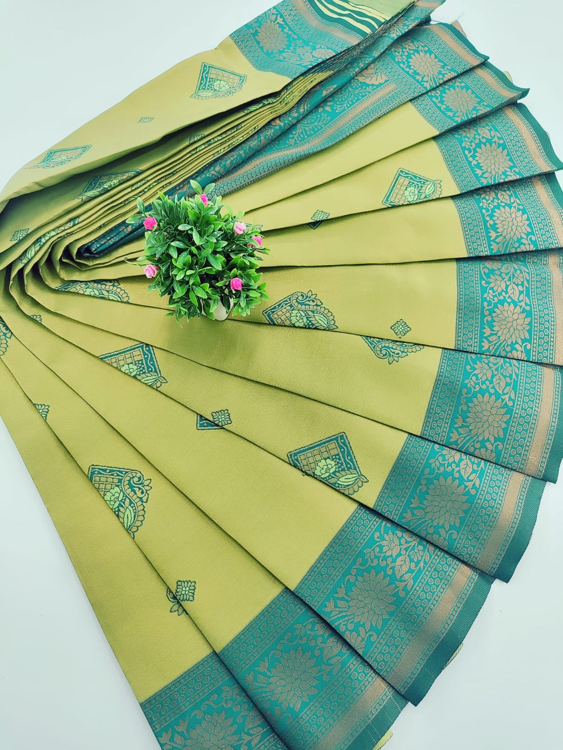Tissue Silk Saree – Lime Green with Turquoise Blue Border