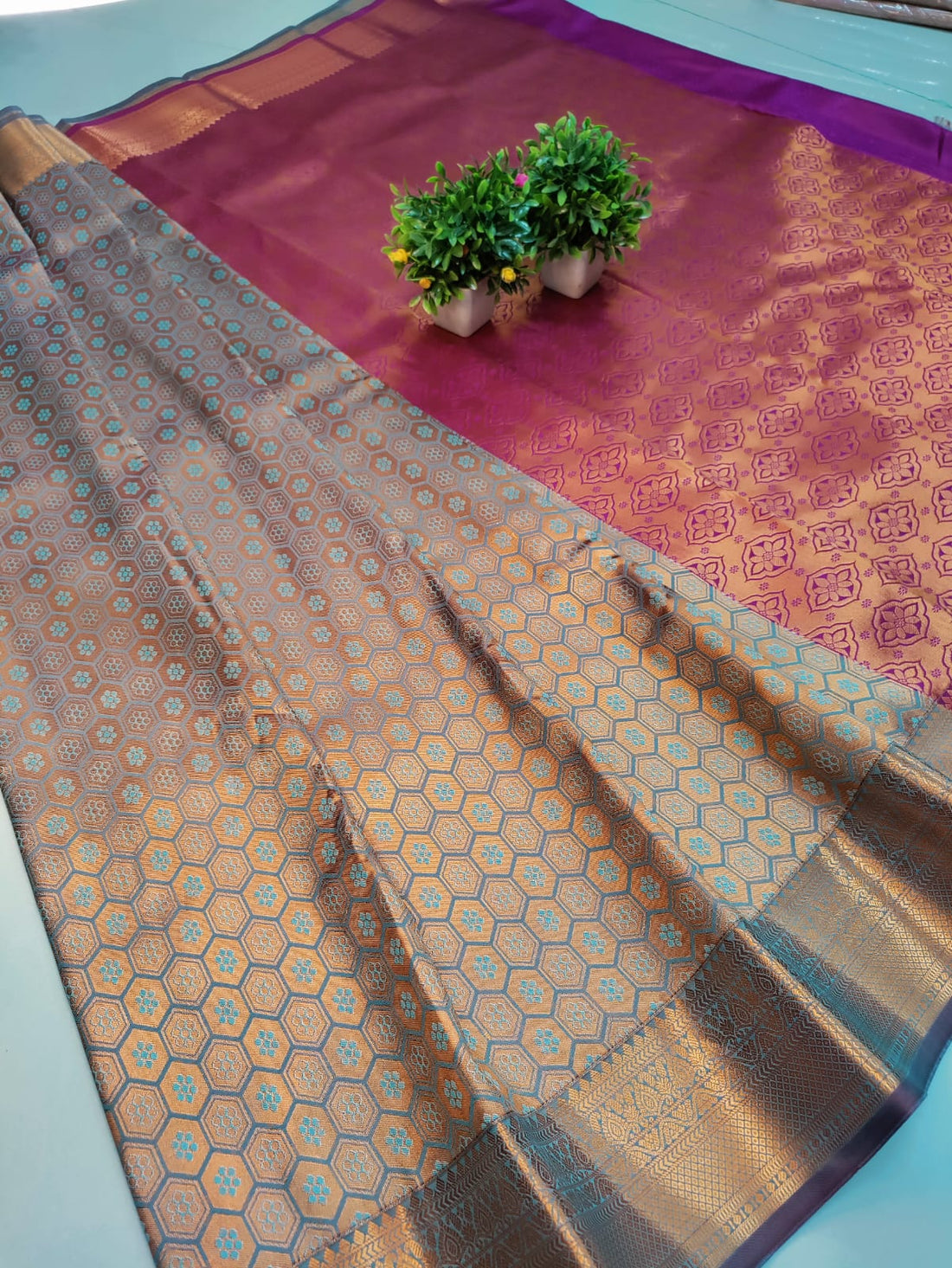 ✨ Samruthi Pattu Saree – Baby Pink with Teal ✨