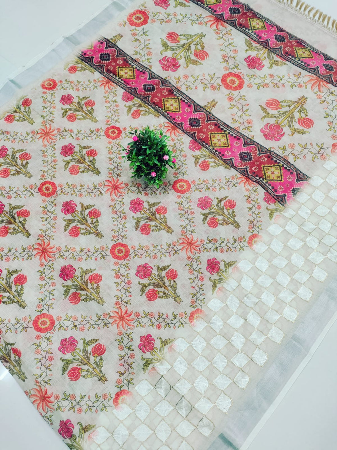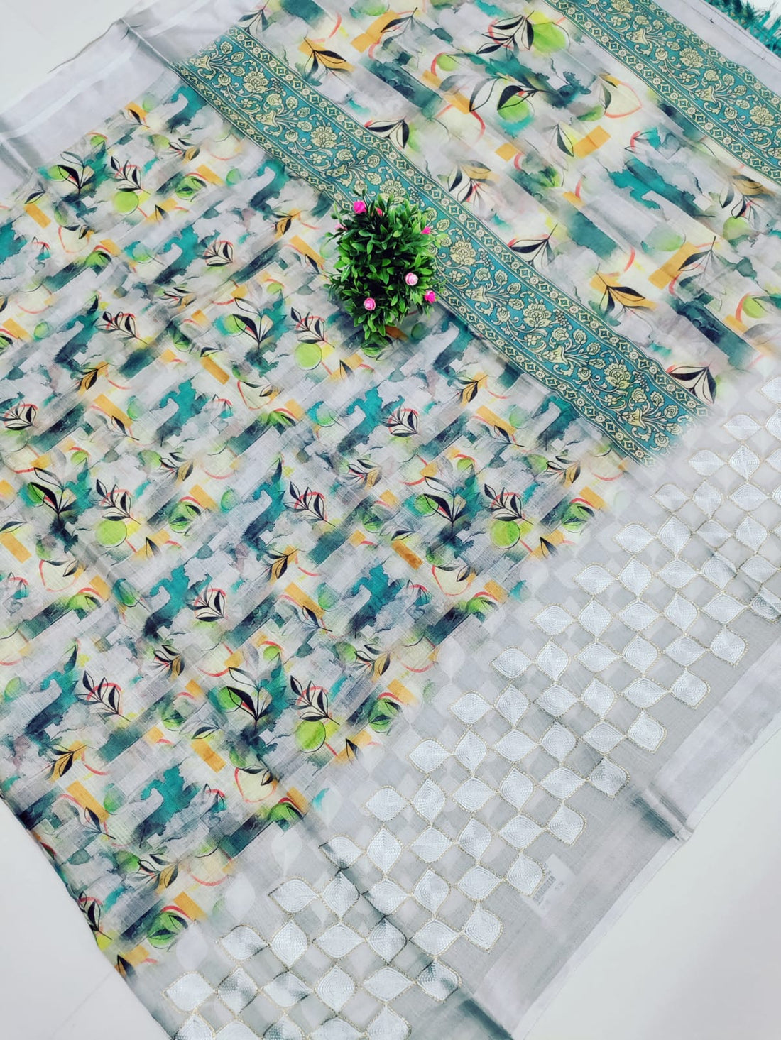 Experience the perfect blend of comfort and elegance with our Linen Cotton Embroidered Saree. Crafted...