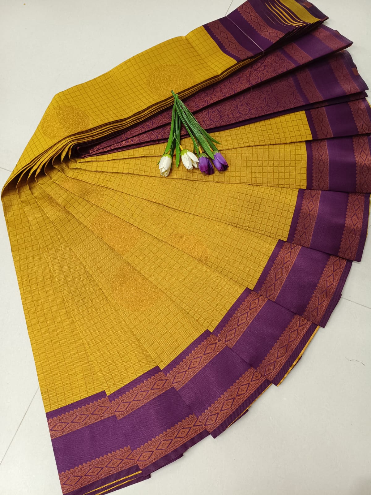 Mustard Gold with Purple Elegance – Soft Silk Saree